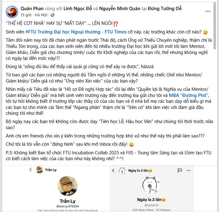 [Update 26/11/25] Chắc do trường FTU nổi tiếng nên các bạn sinh viên hay bị soi xét khi làm sai. Vì thế lâu lâu lại nổi lên 1 vụ kiểu như này. Năm 2013, "Sinh viên đòi quyền ưu tiên tuyển dụng vì học trường Ngoại Thương FTU".