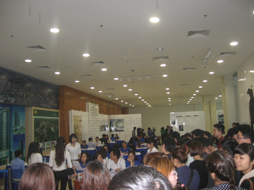 Tại đại sảnh lớn khách sạn có dùng máy chiếu để chiếu slide về khách sạn. Sự kiện tuyển dụng lên đến tận 2 ngày, nhưng nhà tuyển dụng không hề có lịch trình cụ thể để phát cho người đến dự. Tóm lại là chỉ đến phỏng vấn. Xong thì ứng viên về.