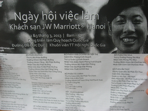 Hôm thứ 7 và chủ nhật tuần vừa rồi (2,3/3) tình cờ tôi có được tham dự ngày hội tuyển dụng của khách sạn 5 sao JW marriott Hà Nội. Sự kiện được tổ chức khá lớn.