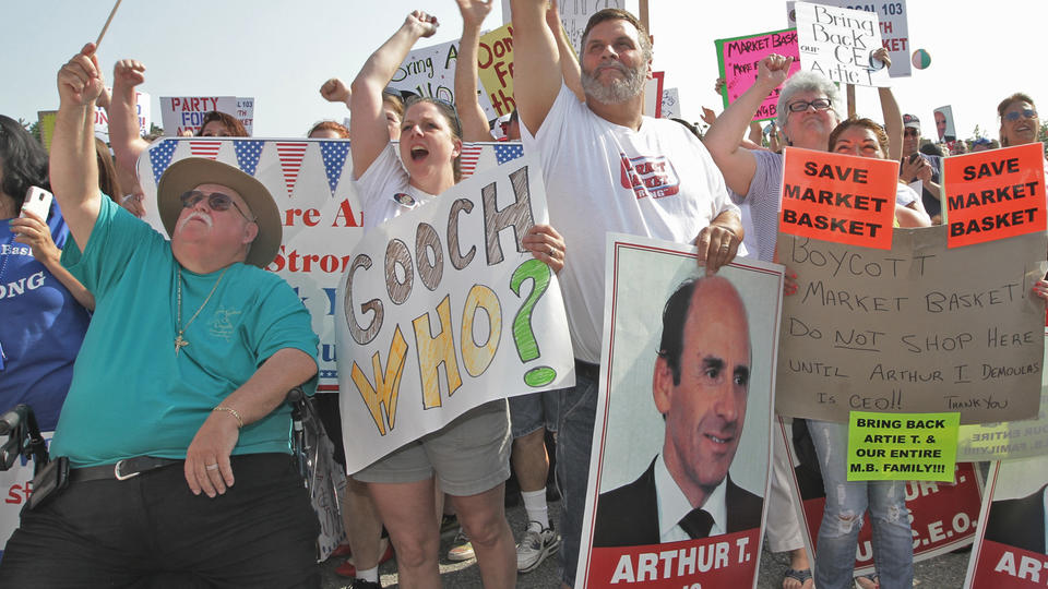 (072514 Tewksbury, MA) Market Basket employees and their supporters hold a rally in Tewksbury, Mass., Friday, July 25, 2014 to back their former CEO Arthur T. Demoulas. ( Herald Photo by Chitose Suzuki)