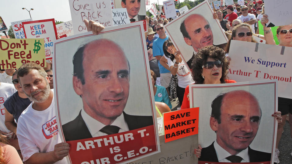 (072514 Tewksbury, MA) Market Basket employees and their supporters hold a rally in Tewksbury, Mass., Friday, July 25, 2014 to back their former CEO Arthur T. Demoulas. ( Herald Photo by Chitose Suzuki)
