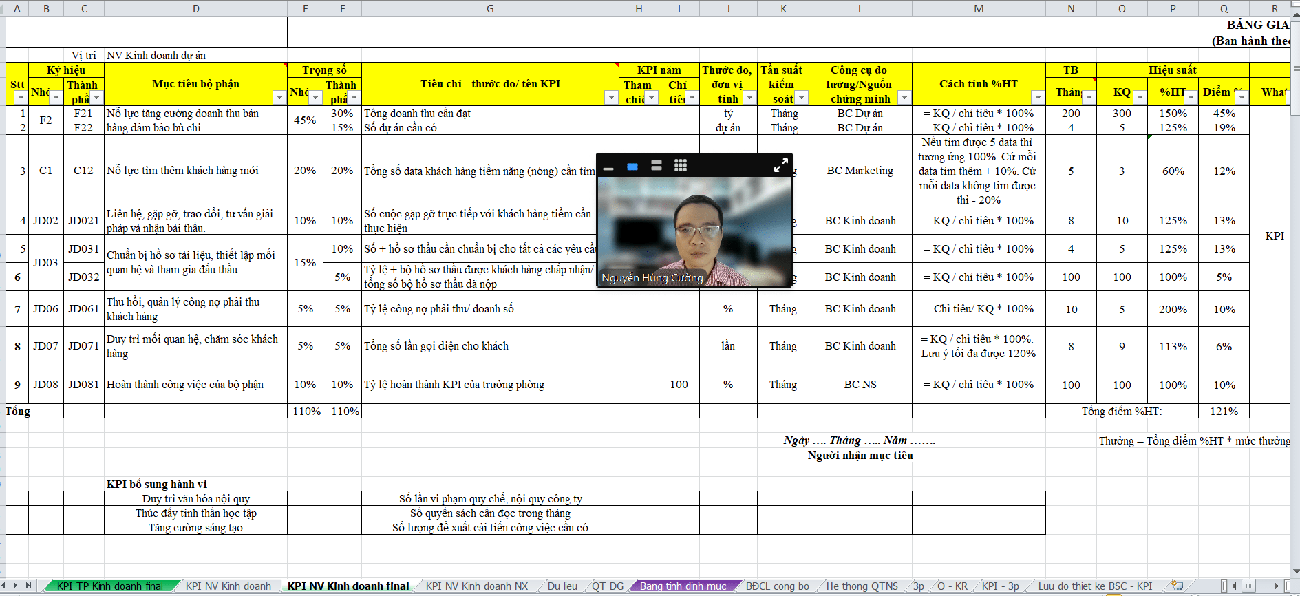 - Giả định sale đạt 90% tổng doanh thu cần đạt. Ta tính được tổng thu nhập của sale = % doanh thu trích cho sale * 90% tổng doanh thu cần đạt. Lấy tổng thu nhập của sale khi đạt 90% tổng doanh thu cần đạt - lương P1 - lương P2 - (thưởng KPI tháng + thưởng KPI quý tính theo tháng + thưởng KPI 6 tháng tính theo tháng + thưởng KPI năm tính theo tháng + quà) = Hoa hồng đạt được ở mức 90%. Tiếp tục lấy Hoa hồng đạt được ở mức 90% / Doanh thu ở mốc 90% * 100% = % hoa hồng trích cho sale ở mốc 90%.