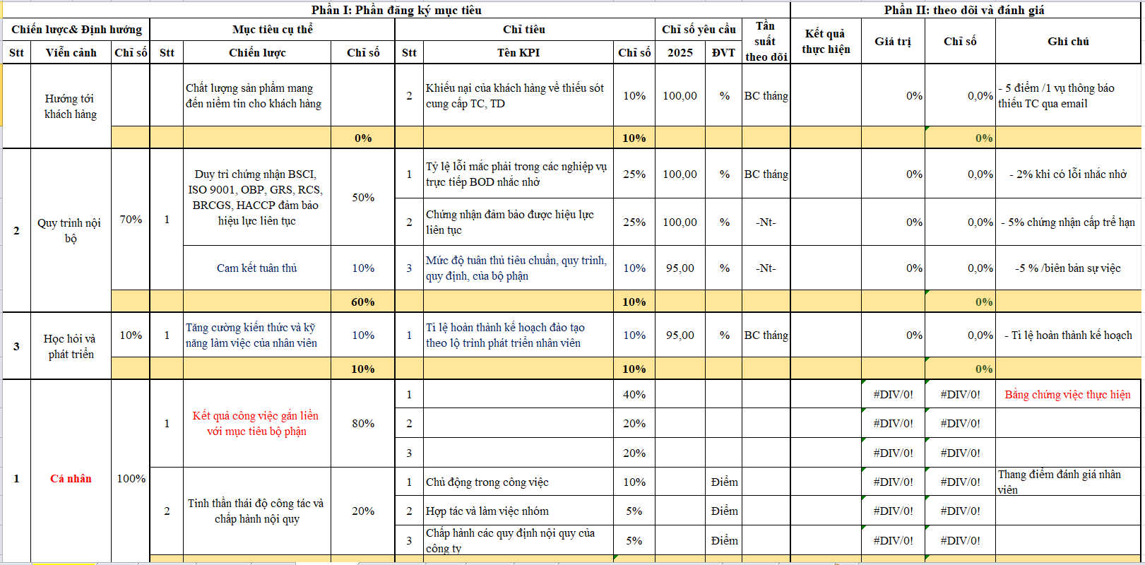 - Thẻ KPI của nhân viên có 2 phần (cũng chính là mục tiêu):