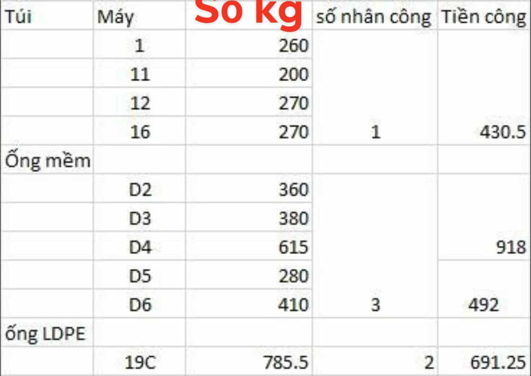 - Số tiền máy làm ra = Đơn giá kg * sản lượng kg