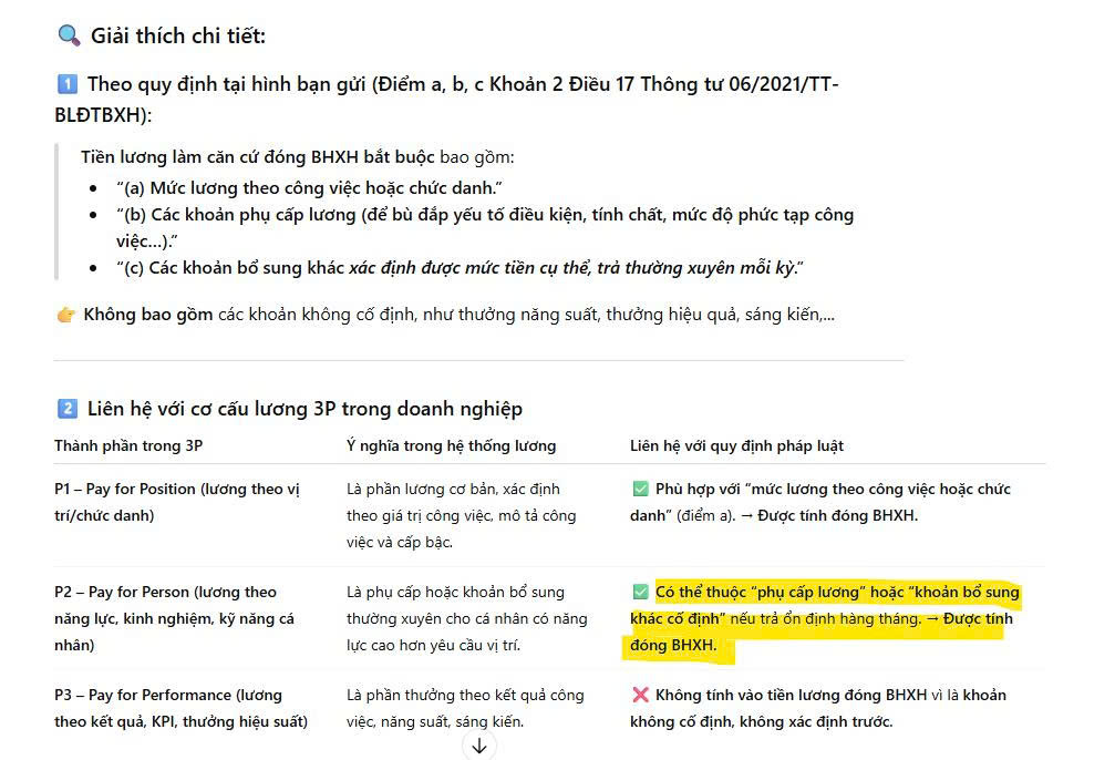Cơ cấu lương 3P (P1, P2, P3) có liên kết như thế nào với cơ cấu tiền lương theo định nghĩa của Bộ Luật LĐ?