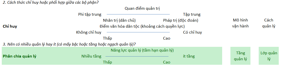 3. Nên có nhiều quản lý hay ít (có mấy bậc hoặc tầng hoặc ngạch quản lý)?
