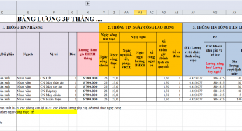 File mẫu định mức, chính sách, bảng tính lương 3P có thưởng sản phẩm theo công đoạn bằng Excel